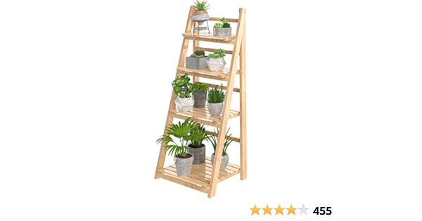 Homidec Plant Stand 4 Tier Wooden Ladder Shelf Foldable Display Flowers Plant Stand Free Installation Plant Stand Indoor Corner Storage Shelves Bookshelf For Garden Balcony Living Room Natural Amazon De Home